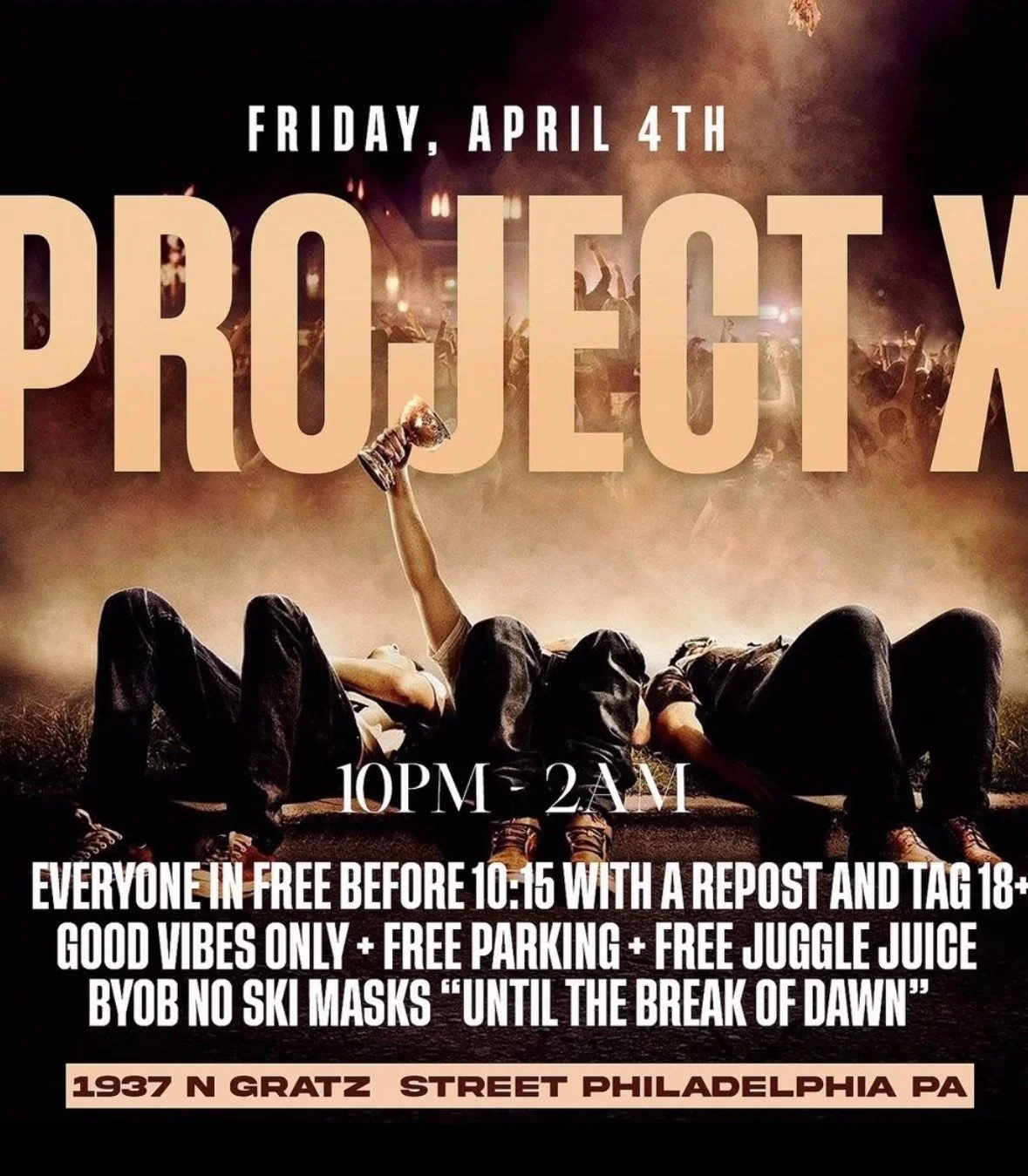 Events PROJECT X APRIL, 4 1937 N Gratz StPhiladelphia, PA10pm-2am April, 5 TBAPhiladelphia, PA10pm-2am Updates & Announcements